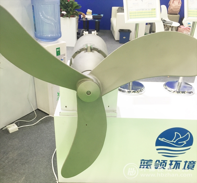 圖為廣州環(huán)博會期間 藍領環(huán)境攜MBBR填料專用推流器參展