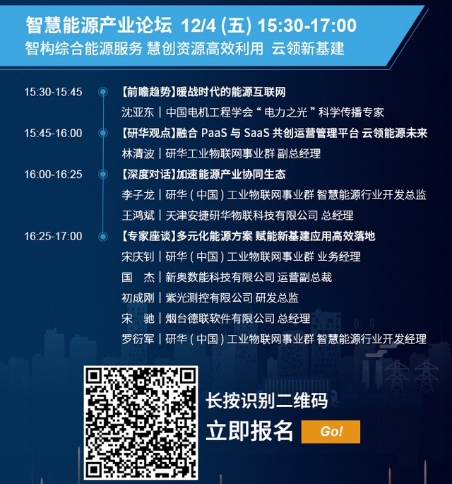 而在12月4日15:30—17:00時召開的智慧能源產業(yè)論壇(←點擊進入報名詳情頁)上,同樣是精彩紛呈:聚焦“智構綜合能源服務、慧創(chuàng)資源高效利用、云領新基建”議題,首先是中國電機工程學會“電力之光”科學傳播專家沈亞東將帶來《【前瞻趨勢】暖戰(zhàn)時代的能源互聯(lián)網》;研華工業(yè)物聯(lián)網事業(yè)群副總經理林清波將分享《融合PaaS與SaaS共創(chuàng)運營管理平臺 云領能源未來》主題演講;緊接著,研華(中國)工業(yè)物聯(lián)網事業(yè)群智慧能源行業(yè)開發(fā)總監(jiān)李子龍、天津安捷研華物聯(lián)科技有限公司總經理王鴻斌將就《加速能源產業(yè)協(xié)同生態(tài)》進行分享。