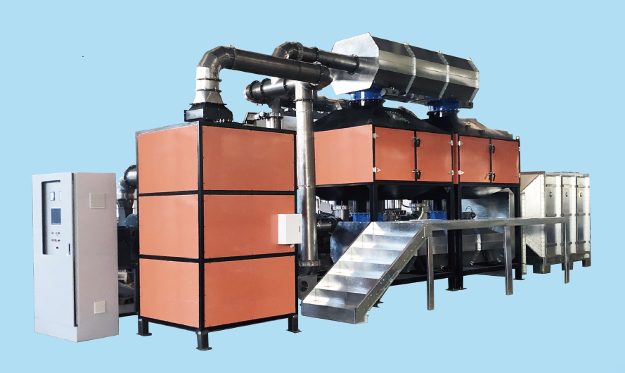 該VOCs治理設備采用積木和拼裝式結構,積木式結構有利于不同型號產(chǎn)品的配件通用,實施標準化流水作業(yè)生產(chǎn);拼裝式結構方便運輸和現(xiàn)場安裝及方便設備遷移易址。該VOCs治理設備主要包括粗中精三道干式過濾裝置、抽屜式活性炭VOC吸附床、自動防火系統(tǒng)(液氮與水噴淋消防系統(tǒng))、自動防爆系統(tǒng)(自動泄壓系統(tǒng))、電磁控制管道閘閥、工業(yè)級通風管道、催化燃燒脫附主機、維修維護平臺、PLC自動控制系統(tǒng)與在線技術支持系統(tǒng)等,集標準化、智能化、安全化于一體,優(yōu)勢顯著。