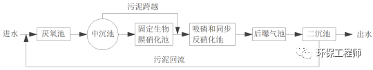 其實(shí)該工藝還有一定的缺陷,比如:①厭氧池中無法完全吸附有機(jī)物,導(dǎo)致固定膜反應(yīng)器進(jìn)水中攜帶有BOD,一方面抑制硝化反應(yīng),另一方面造成有機(jī)物的浪費(fèi)和能耗的增高;②在進(jìn)水氨氮偏高時(shí),缺氧池中反硝化除磷菌不能徹底的去除硝氮,導(dǎo)致出水TN的升高。