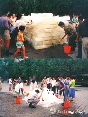 上世紀(jì)90年代,不少國(guó)內(nèi)藝術(shù)家已經(jīng)用藝術(shù)作品表現(xiàn)環(huán)境破壞問題。類似藝術(shù)家尹秀珍1995年的行為藝術(shù)《洗河》便是因?yàn)楫?dāng)時(shí)成都府南河和全國(guó)的許多河流一樣,污染非常嚴(yán)重。為了形象地說明問題的嚴(yán)重性,尹秀珍借用現(xiàn)代工業(yè)手段將府南河河水取出了十立方米,在冰廠制成冰塊,然后再運(yùn)回到岸邊以清水加以洗刷。過路的行人和市民見狀也紛紛參與其中。