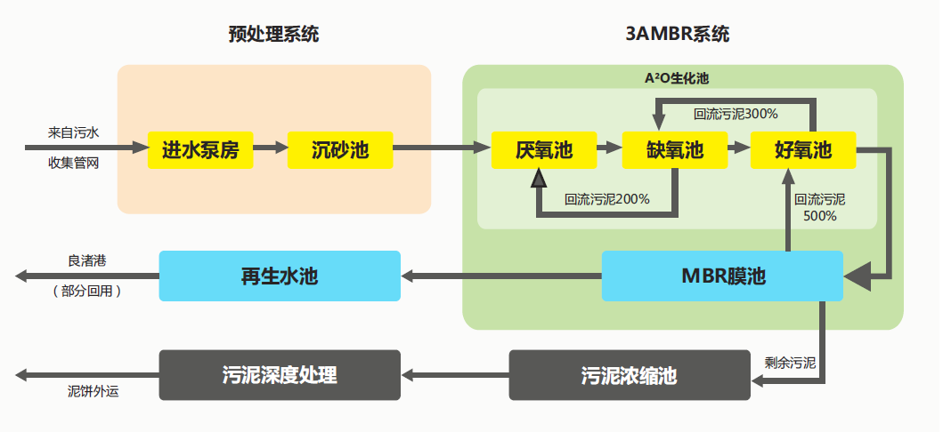 浙江省杭州市良渚污水處理廠三期工程的深度處理單元設(shè)計(jì)規(guī)模3.0萬m³/d,處理工藝為天創(chuàng)環(huán)境自主研發(fā)的高效膜生物反應(yīng)器(MBR)集成技術(shù)。