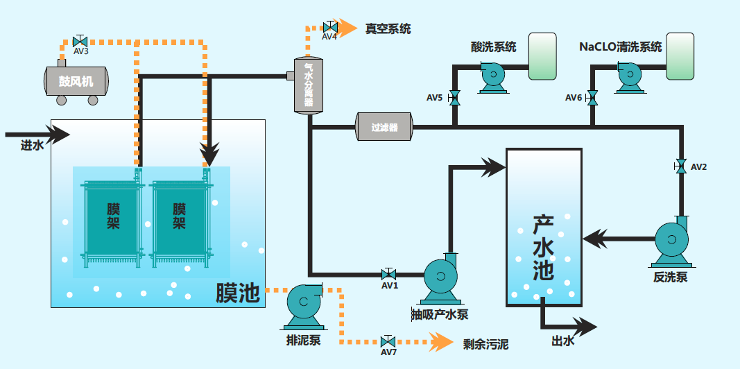經(jīng)過MBR系統(tǒng)處理后,產(chǎn)品水CODCr穩(wěn)定在30mg/L以下,NH3-N穩(wěn)定在2mg/以下,濁度穩(wěn)定在0.1NTU以下,可滿足準(zhǔn)V類水水質(zhì)標(biāo)準(zhǔn)。