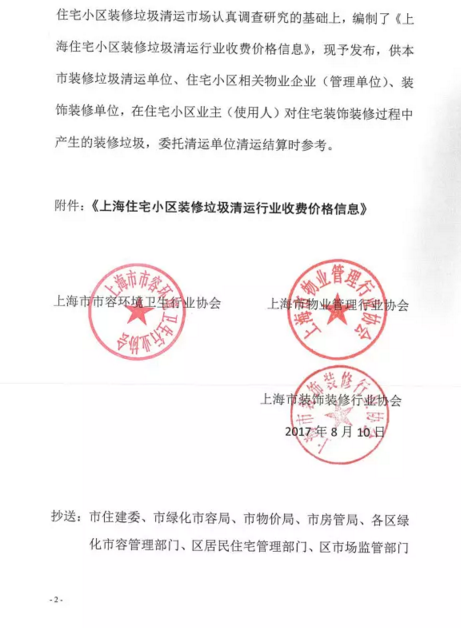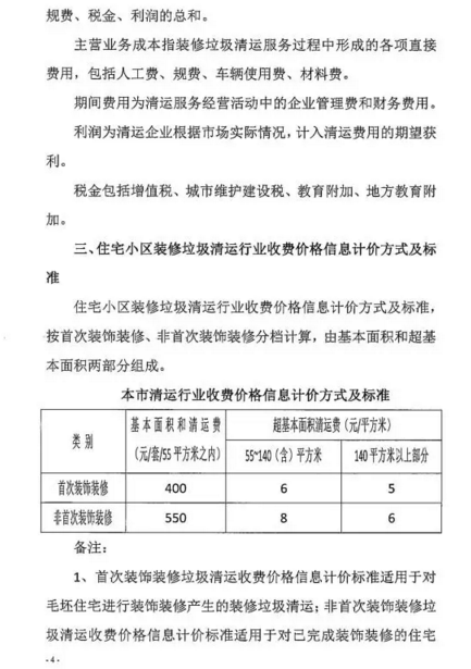 《上海市住宅小區(qū)裝修垃圾清運行業(yè)收費價格信息》全文內容如下: