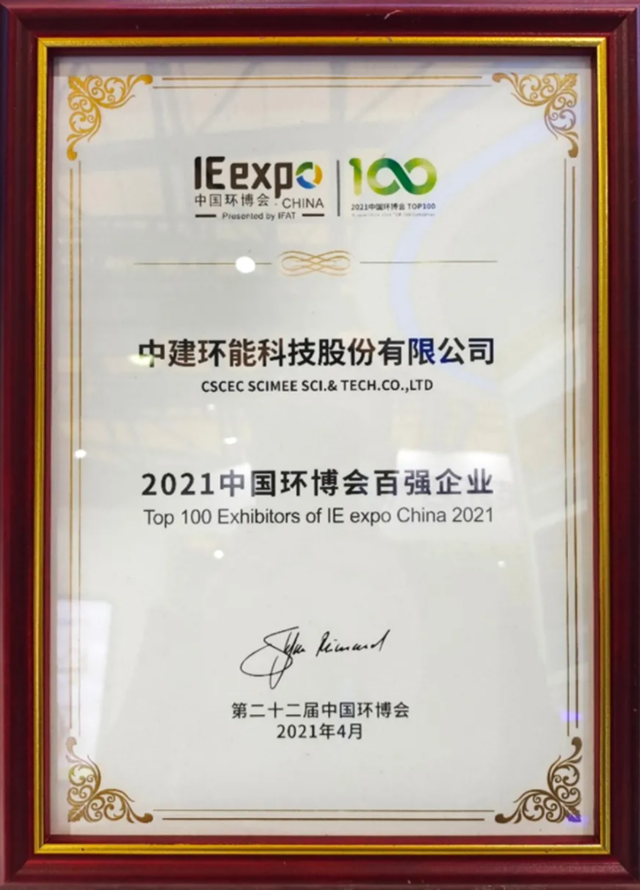 中建環(huán)能榮獲“2021中國環(huán)博會百強(qiáng)企業(yè)”稱號。本次展會參展企業(yè)2157家,180家企業(yè)進(jìn)入初選名單,最終100家企業(yè)入圍,約占參展企業(yè)的4%。這代表了本屆展會營收多實(shí)力強(qiáng)的優(yōu)質(zhì)企業(yè)。