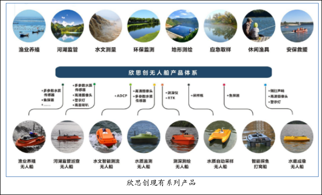 2019年6月推出受到市場十分青睞的“欣思創(chuàng)河湖監(jiān)管巡查無人船”,產(chǎn)品兼具水質(zhì)在線監(jiān)測、水面巡查管理、水底暗管排除等功能,在4G/5G信號覆蓋的水域,通過搭載的各類專業(yè)傳感器與高清攝像頭、遠(yuǎn)程喊話等相關(guān)水面巡查設(shè)備,在信息管理中心實(shí)現(xiàn)遠(yuǎn)程水質(zhì)實(shí)時監(jiān)測與水域巡查監(jiān)管的工作目標(biāo)。目前此產(chǎn)品已經(jīng)在水生態(tài)環(huán)境智慧監(jiān)測、應(yīng)急水污染事故監(jiān)測、河長制管理、河湖監(jiān)管體系等環(huán)保監(jiān)管領(lǐng)域得到了廣泛的應(yīng)用。