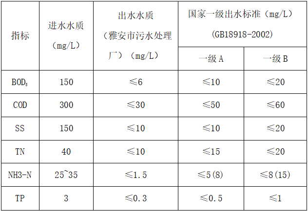 市本級項目“雅安市污水處理廠新建項目”出水標(biāo)準(zhǔn)采用四川省發(fā)布的《四川省岷江、沱江流域水污染排放標(biāo)準(zhǔn)》(DB51/2311-2016),排放指標(biāo)超過了國家對城鎮(zhèn)污水處理廠污染物排放標(biāo)準(zhǔn)(GB1891-2002)的一級標(biāo)準(zhǔn)A標(biāo)準(zhǔn),并滿足城鎮(zhèn)回用水質(zhì)要求。鄉(xiāng)鎮(zhèn)污水處理站執(zhí)行一級A標(biāo)準(zhǔn)。污水處理廠/站運營維護的工作內(nèi)容及質(zhì)量標(biāo)準(zhǔn)符合污水處理設(shè)施適用法律和國家行業(yè)規(guī)范、標(biāo)準(zhǔn)的每一項規(guī)定。