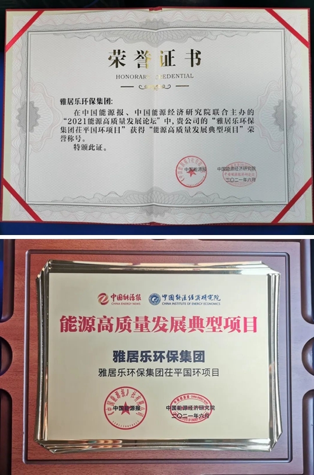 會議以“傳承百年紅色基因 助推綠色轉(zhuǎn)型發(fā)展”為主題,圍繞碳達峰、碳中和目標,深入探討能源轉(zhuǎn)型發(fā)展中的新技術(shù)、新模式、新業(yè)態(tài),為能源行業(yè)高質(zhì)量發(fā)展建言獻策,并對能源領(lǐng)域表現(xiàn)佳的企業(yè)、項目給予表彰。雅居樂環(huán)保集團旗下茌平國環(huán)項目憑借優(yōu)異的自主研發(fā)技術(shù)能力,獲評“能源高質(zhì)量發(fā)展典型項目”。