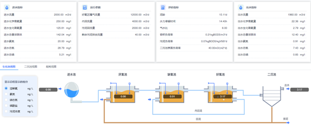 2) 評估不同運行工況對水質,能耗的影響,實現(xiàn)工藝優(yōu)化和輔助方案決策;