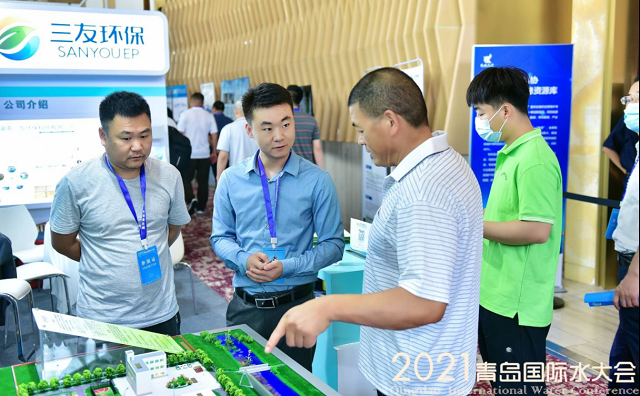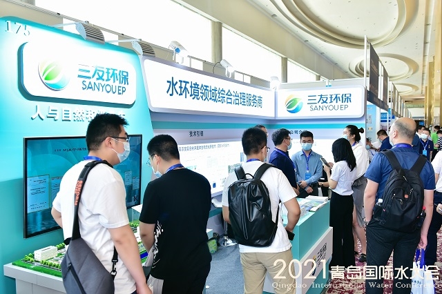2021青島水國(guó)際大會(huì)現(xiàn)場(chǎng)三友環(huán)保展臺(tái)前觀眾參觀