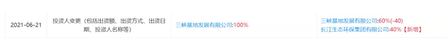 根據(jù)企查查資料顯示,今年6月,三峽環(huán)境投資人發(fā)生變更,長(zhǎng)江環(huán)保集團(tuán)入股,持有該公司40%股權(quán)。