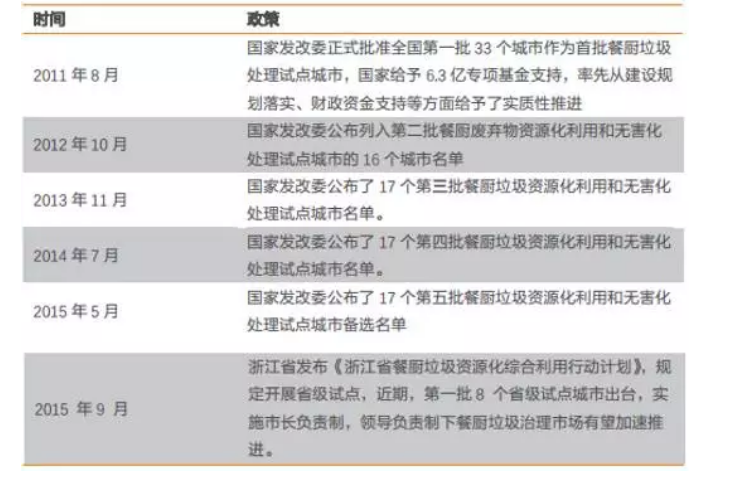 餐廚垃圾規(guī)劃投資增加,政府考核力度加大。 “十三五”城鎮(zhèn)生活垃圾規(guī)劃中擬投資餐廚垃圾專(zhuān)項(xiàng)工程 136 億元,較“十二五”規(guī)劃金額增加 25%,是“十三五”規(guī)劃中僅有的兩個(gè)增項(xiàng)之一,可見(jiàn)政府對(duì)餐廚垃圾處理的重視程度有所提高。部分地方政府考核力度也逐漸加大, 2015 年 10 月,發(fā)改委印發(fā)的《試點(diǎn)城市中期評(píng)估及終期驗(yàn)收管理辦法》中規(guī)定評(píng)估不合格的試點(diǎn)城市一年內(nèi)不得申報(bào)各類(lèi)循環(huán)經(jīng)濟(jì)重點(diǎn)工程,因此我們認(rèn)為,在十三五”初期這一時(shí)點(diǎn),頂層設(shè)計(jì)如中期及終期評(píng)估的開(kāi)展,將極大的推動(dòng)未來(lái)行業(yè)的發(fā)展。