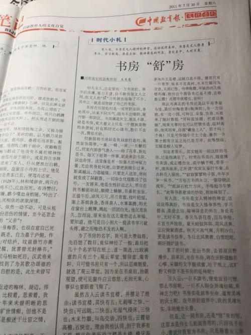 1997年,在校園文學(xué)刊《蒲園》發(fā)表文章,2008年,在《新鄉(xiāng)日?qǐng)?bào)》發(fā)表文章,2011年來(lái),接連在《中國(guó)教育報(bào)》《中國(guó)教師報(bào)》《工人日?qǐng)?bào)》《中國(guó)紀(jì)檢監(jiān)察報(bào)》《文匯報(bào)》《科學(xué)時(shí)報(bào)》《中國(guó)建材報(bào)》《思維與智慧》《讀者》《青年文摘》《牧野文學(xué)》等發(fā)表作品,2012年,《山寺之夜》在《人民日?qǐng)?bào)》大地副刊發(fā)表,問(wèn)鼎國(guó)家第一大報(bào)的文學(xué)圣殿……作品接連在各大報(bào)刊發(fā)表,他的創(chuàng)作達(dá)到了一個(gè)小高潮。贏得了一點(diǎn)小小的聲名,各種贊譽(yù)也隨之而來(lái)。但只有他自己,明白那其中的苦辛:每日早起晚睡,眼熬紅了,發(fā)變稀了,不敢笑,一笑,眼角就是深深的皺紋。頗類于韓愈的“口不絕吟于六藝之文,手不停披于百家之編。”“焚膏油以繼晷,恒兀兀以窮年。”當(dāng)十多年不見(jiàn)的同學(xué)見(jiàn)到他的照片,驚嘆:天啊,到底經(jīng)歷了什么?把以往的小鮮肉摧殘成這般模樣。對(duì)此,他淡然一笑,有痛,更多的是充實(shí)和欣慰。他堅(jiān)信,他的付出是值得的。
