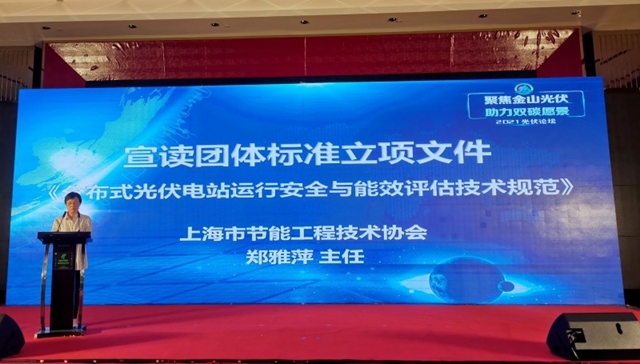 上海市節(jié)能工程技術(shù)協(xié)會辦公室主任鄭雅萍宣讀團(tuán)體標(biāo)準(zhǔn)《分布式光伏電站運行安全與能效評估技術(shù)規(guī)范》工作組立項文件。