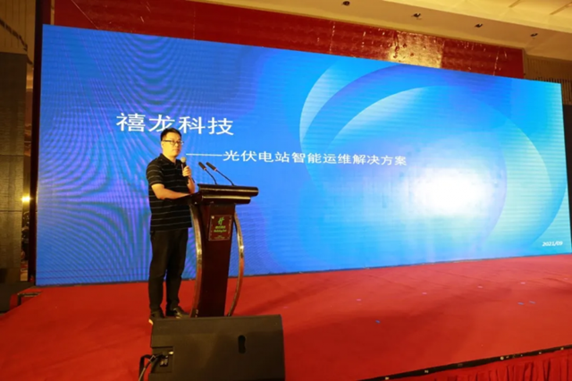 上海禧龍科技股份有限公司經(jīng)理唐建超作《 分布式光伏電站智能運維技術(shù)》的主旨演講。