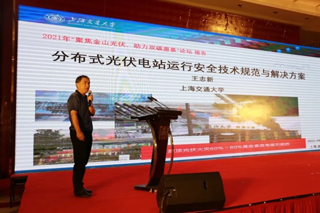 上海交通大學(xué)教授、博士生導(dǎo)師王志新作題為《分布式光伏電站運行安全技術(shù)規(guī)范與解決方案》的主旨演講。