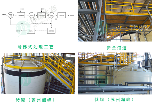 “兩級階梯式深度除氟”工藝——環(huán)瑞自主研發(fā),并已多項目、成熟運用。該工藝?yán)贸铀幈壤A梯式變化特點,精心設(shè)計(第一步將氟化物處理至5mg/L,第二步將氟化物處理至<0.8mg/L),流程順暢,處理效果好,同時能最大限度降低藥劑用量(比一步法降低50%加藥量),確保廢水穩(wěn)定達(dá)標(biāo)。
