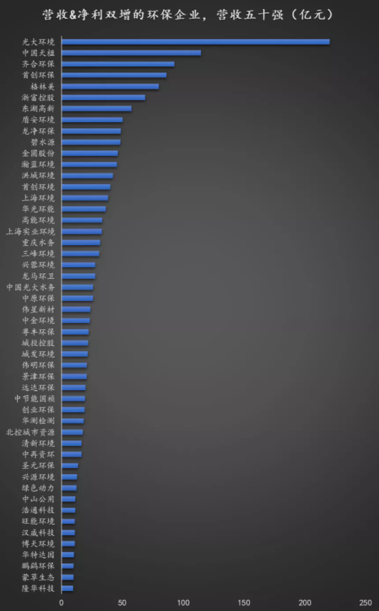 原標(biāo)題:122家營收&凈利雙增的環(huán)保企業(yè)中,營收50強(qiáng)都是誰?