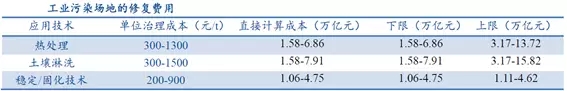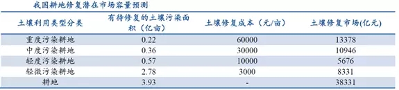 我國土壤污染類型包括農(nóng)業(yè)耕地土壤污染、城市工業(yè)用地土壤污染以及礦區(qū)土壤污染。目前,我國待修復(fù)的污染場地數(shù)量非常之多,保守估計超過50萬塊。其中,耕地土壤修復(fù)投資需求在3萬億以上,城市土壤修復(fù)投資需求1萬億以上,礦區(qū)土壤修復(fù)投資需求可達近2萬億。(備注:由于修復(fù)分為輕重緩急,分階段進行,而且受到資金的制約,所以預(yù)測的投資需求,和真正會去修復(fù)的地塊,不是同一個概念)