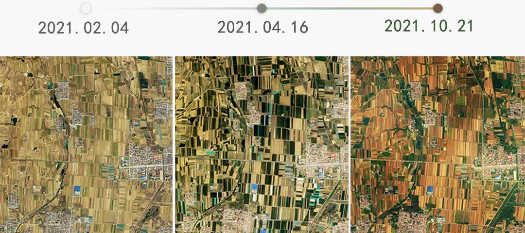 衛(wèi)星記錄下這片土地從播種到豐收的四季變化。
