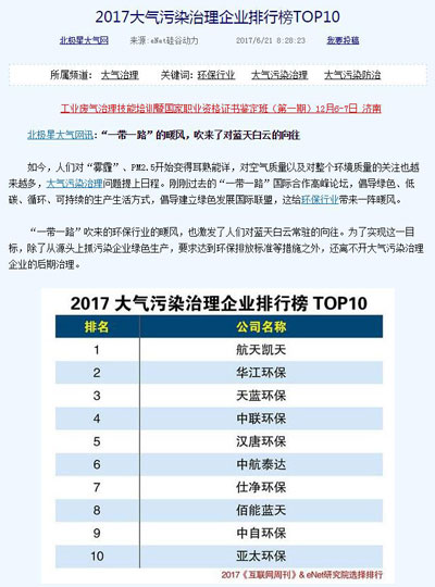 這一年,在中國環(huán)境產(chǎn)業(yè)協(xié)會相關(guān)統(tǒng)計和其他行業(yè)評選中,中航泰達均以優(yōu)異成績位列非電領(lǐng)域市場占有率領(lǐng)先地位。