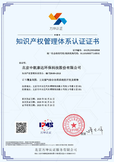▼中航泰達知識產(chǎn)權(quán)管理體系認證證書