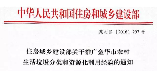 這份長達(dá)17頁的的通知中,住建部高度評價(jià)了2014年以來,金華市積極推進(jìn)農(nóng)村生活垃圾分類和資源化利用的探索,要求全國各省(區(qū)、市)住房城鄉(xiāng)建設(shè)或農(nóng)村生活垃圾治理業(yè)務(wù)主管部門要認(rèn)真學(xué)習(xí)金華經(jīng)驗(yàn),在本地區(qū)選擇3個(gè)以上代表性縣(市、區(qū)開展農(nóng)村生活垃圾分類和資源化利用示范,并組織編制實(shí)施方案,國家住房和城鄉(xiāng)建設(shè)部將組織專家進(jìn)行現(xiàn)場指導(dǎo)和評估。