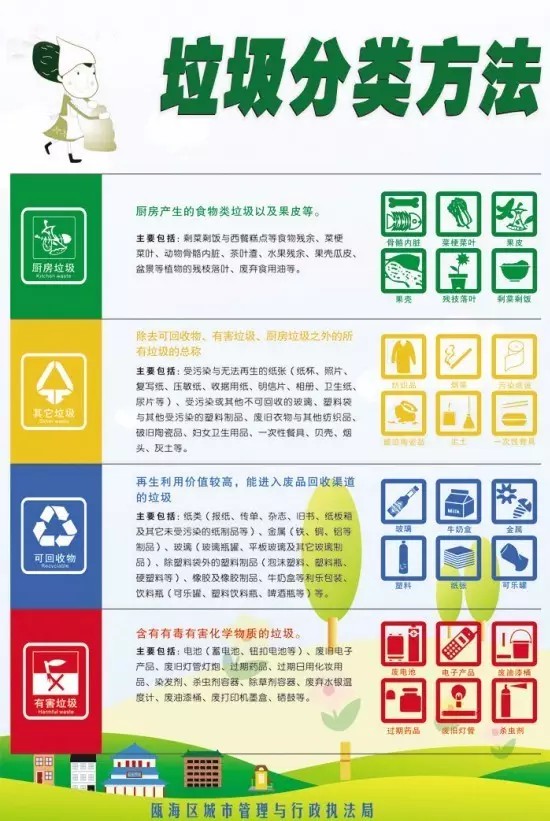 永康市在城鄉(xiāng)全面開展了有害垃圾分類,電池、廢舊燈管燈泡、過期藥品、農(nóng)藥容器等不再混在普通生活垃圾中收集處理,而由超市、藥店和鄉(xiāng)鎮(zhèn)統(tǒng)一回收點(diǎn)回收,再定點(diǎn)集中銷毀。永康市農(nóng)辦干部丁維君說:“更精細(xì)化的分類,能在減量化、資源化利用的基礎(chǔ)上,進(jìn)一步提高無害化處理水平。”