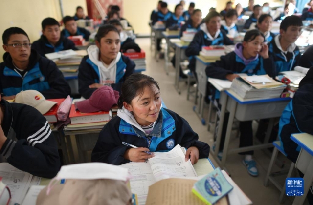 11月25日,青海省海南藏族自治州興??h民族高級中學(xué)高一(1)班學(xué)生在教室內(nèi)聽講。新華社記者 駱曉飛 攝