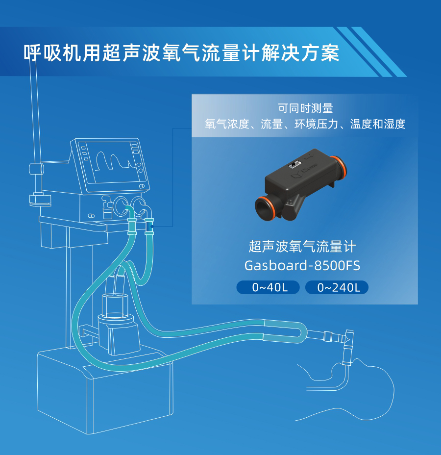 四方光電在健康醫(yī)療領(lǐng)域推出的Gasboard-8500FS超聲波氧氣流量計,可同時檢測氧氣的濃度、流量、壓力、溫度和濕度等指標,并通過串口或模擬信號輸出。傳感器具有生命周期內(nèi)無零點漂移、響應快速、穩(wěn)定性好、精度高及壽命長等優(yōu)勢,接口按照ISO 5356設(shè)計,采用密封圈方式,更好的滿足客戶的安裝使用需求。目前Gasboard-8500FS流量可達240L/min,滿足呼吸機、麻醉機、高流量濕化治療儀等呼吸醫(yī)療設(shè)備的應用需求。