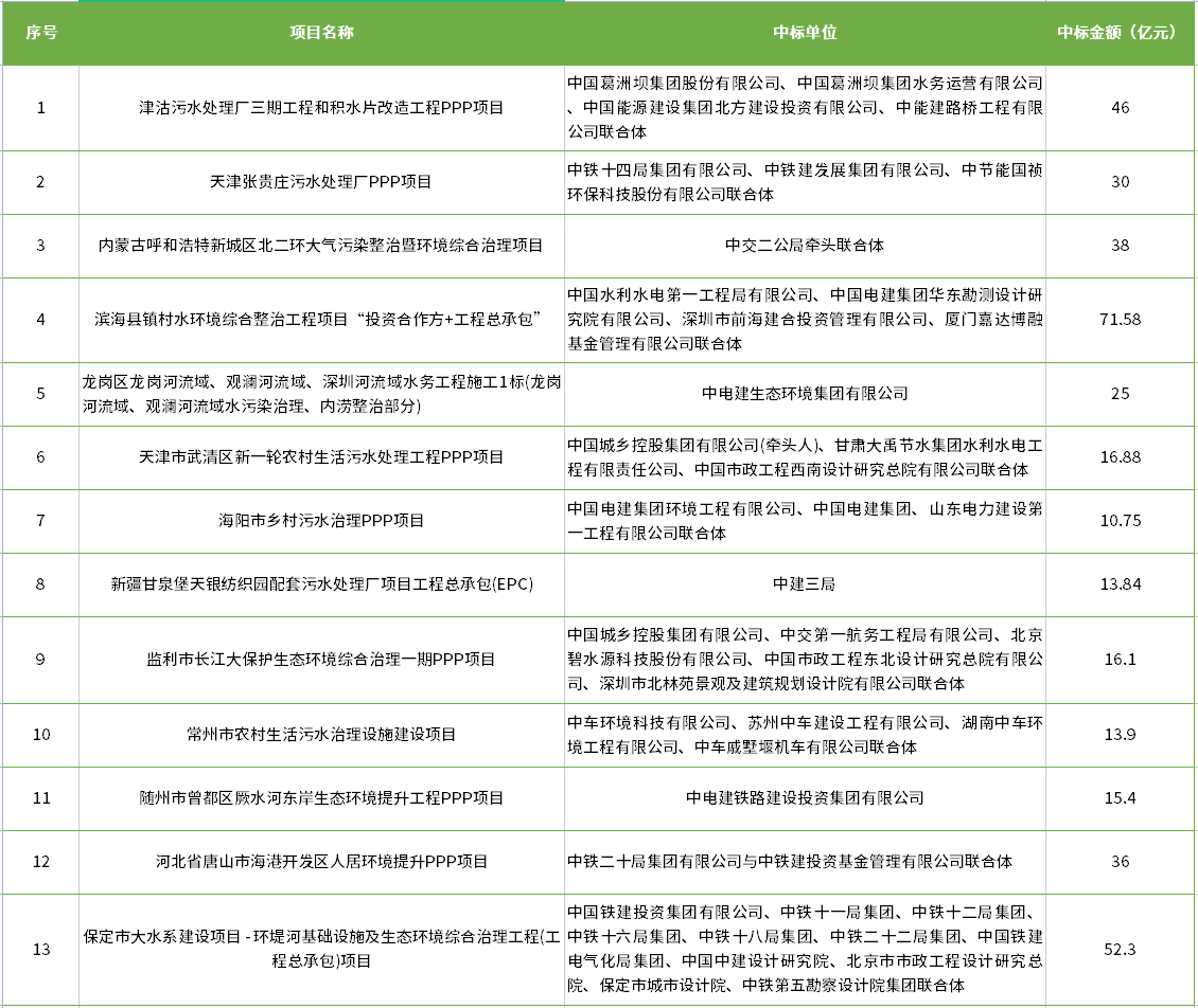 你一定沒注意!2021年以來“中”字頭已中標(biāo)13個10億+環(huán)保項目