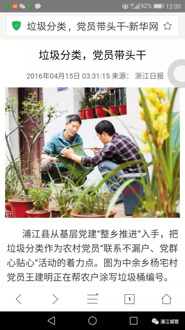 浙江日?qǐng)?bào)報(bào)道浦江垃圾分類黨建制度