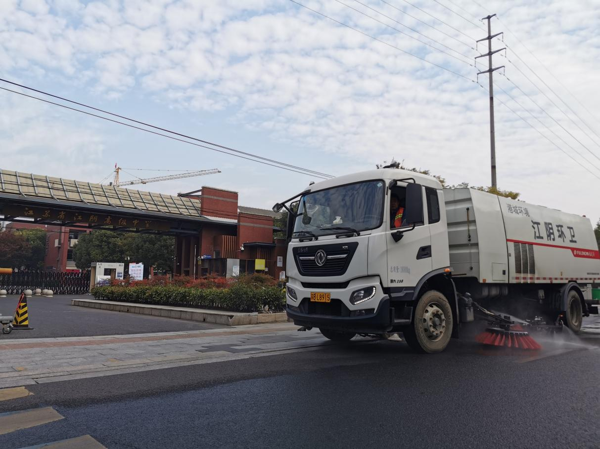 港城環(huán)境科學(xué)制定清掃保潔計劃,實行“定崗、定人、定時、定責(zé)”工作制度;采取人工保潔與道路機械清掃相結(jié)合的作業(yè)模式,錯峰開展道路降塵、道路洗掃等機械作業(yè),保障校園周邊環(huán)境衛(wèi)生質(zhì)量再提升。