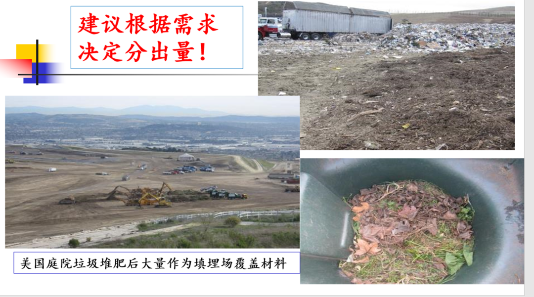 我在現(xiàn)場就問當(dāng)?shù)毓芾砣藛T,已經(jīng)形成這么好的肥料為什么還在填埋場填埋呢?得到的答案是:用不完。這種情況在美國很常見,盡管經(jīng)過哥倫比亞大學(xué)教授的研究論證,認(rèn)為雖然在填埋場但不算填埋處理,而統(tǒng)計(jì)為填埋場覆蓋物,算作回收利用,但是這種現(xiàn)象其實(shí)說明,無論貼什么標(biāo)簽,只要沒人用的就是垃圾,這個(gè)情況在全世界都是現(xiàn)實(shí)存在的。