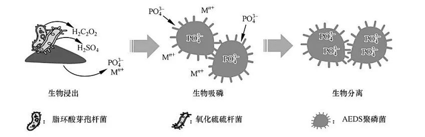 灰分磷回收包括生物法、濕式化學法、熱化學法。生物浸出(生物法)是指在一定工藝條件下利用微生物代謝活動產(chǎn)生的無機酸或分泌的有機酸使磷和金屬從灰分中浸出的過程;生物聚磷則是利用特定微生物的聚磷特性,從生物浸出液中特異性回收磷并與重金屬有效分離的過程。其中,氧化亞鐵硫桿菌能夠氧化亞鐵或將硫化物氧化為單質(zhì)硫進行增殖代謝;氧化硫硫桿菌能夠利用還原態(tài)硫和單質(zhì)硫作為底物生長,產(chǎn)生硫酸,兩種微生物可發(fā)揮協(xié)同作用產(chǎn)生硫酸,將磷和重金屬浸出。