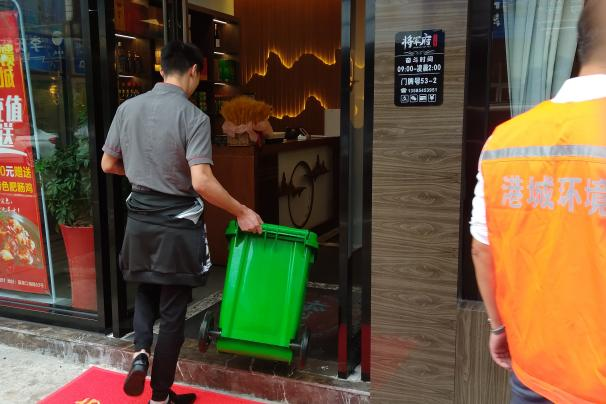 在試運行階段,港城環(huán)境環(huán)衛(wèi)工人會每天上門收取餐廚垃圾,并對餐廚垃圾計量,再根據(jù)當(dāng)月餐廚垃圾收集的平均量,進一步擬定更為合理的價格補充協(xié)議書。