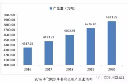 E20研究院的《餐廚垃圾處理市場(chǎng)分析報(bào)告(2016)》指出,近年來(lái)我國(guó)經(jīng)濟(jì)快速發(fā)展,餐廚垃圾以每年10%的增量不斷增長(zhǎng)。按照城鎮(zhèn)人口每人每天產(chǎn)生0.15kg餐廚垃圾計(jì)算,我國(guó)2011年的餐廚垃圾產(chǎn)生量為3782萬(wàn)噸,到2015年我國(guó)的餐廚垃圾產(chǎn)生量增長(zhǎng)到了4222萬(wàn)噸。我國(guó)餐廚垃圾處理行業(yè)也在2015年迎來(lái)了市場(chǎng)的集中爆發(fā)期。預(yù)計(jì)2016年我國(guó)餐廚垃圾的產(chǎn)生量為4347萬(wàn)噸,到“十三五”末期,我國(guó)的餐廚垃圾產(chǎn)生量將增長(zhǎng)至4873萬(wàn)噸,餐廚垃圾處理形勢(shì)嚴(yán)峻。