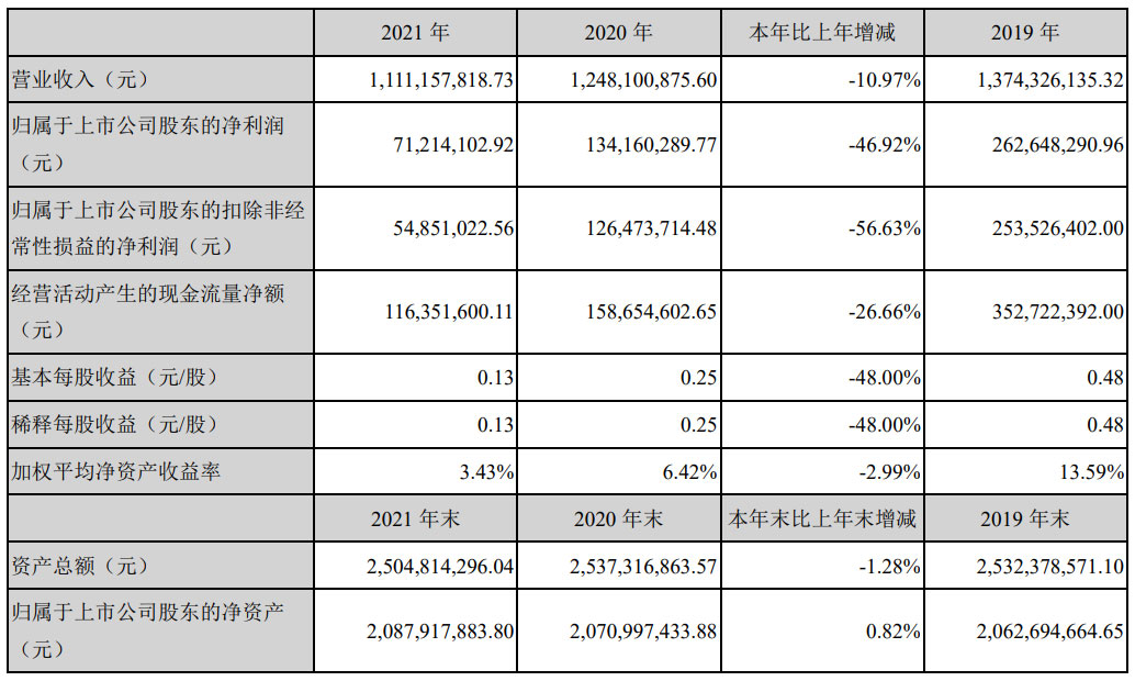就在這樁交易官宣的同時(shí),4月28日,先河環(huán)保剛剛發(fā)布了2021年的年報(bào),報(bào)告期內(nèi),公司實(shí)現(xiàn)營(yíng)業(yè)收入11.11億元,同比下降10.97%;實(shí)現(xiàn)歸屬于上市公司股東的凈利潤(rùn)7121萬(wàn)元,同比下降46.92%。