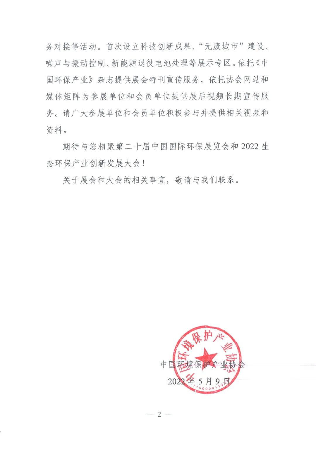期待與您相聚第二十屆中國國際環(huán)保展覽會和2022生態(tài)環(huán)保產(chǎn)業(yè)創(chuàng)新發(fā)展大會!