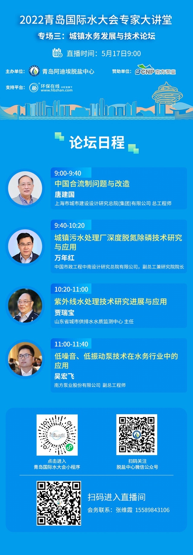 論直播內(nèi)容,排水系統(tǒng)提質(zhì)增效、污水處理廠提標(biāo)擴容、膜技術(shù)應(yīng)用理論及實踐、污水處理領(lǐng)域的前沿技術(shù)及示范、污泥無害化處理及資源化利用等都有;論嘉賓陣容,上海市城市建設(shè)設(shè)計研究總院(集團)有限公司 總工程師唐建國、中國市政工程中南設(shè)計研究總院有限公司,副總工兼研究院院長萬年紅、山東省城市供排水水質(zhì)監(jiān)測中心 主任 賈瑞寶及南方泵業(yè)股份有限公司 副總工程師 吳宏飛等多位專家、學(xué)者濟濟一堂。