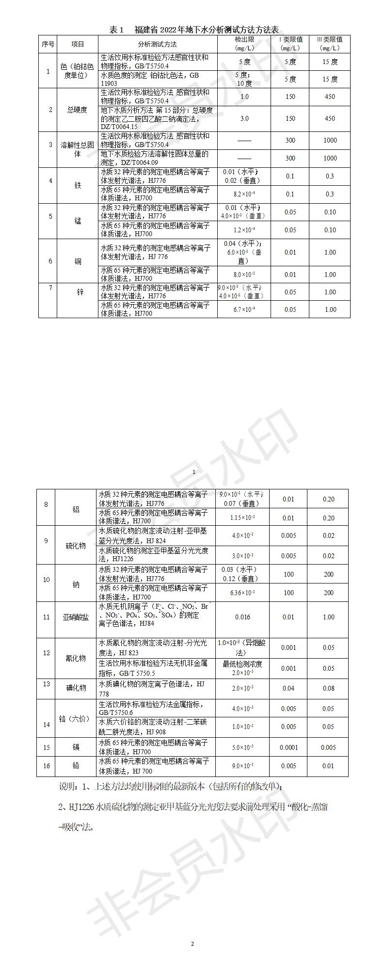 1.鋁、硫化物、碘化物、鉻(六價)、鐵、錳、銅、鋅、鈉、亞硝酸鹽、氰化物、鎘、鉛、色、總硬度、溶解性總固體