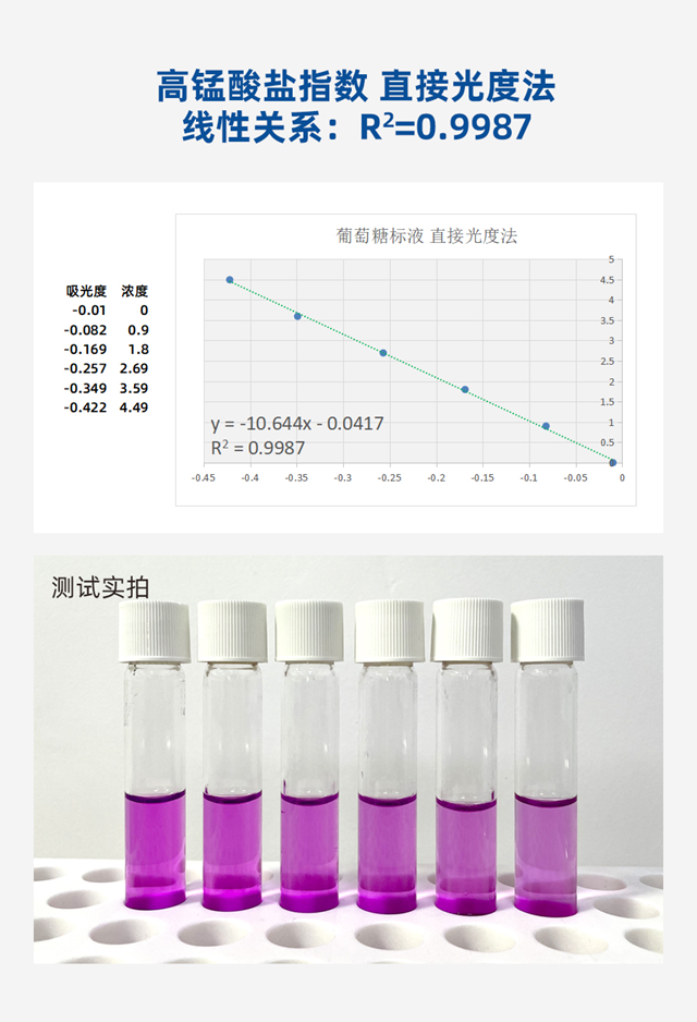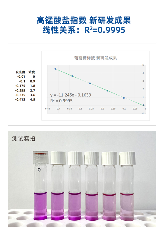 找到問題的關(guān)鍵所在,我們對高錳酸鹽指數(shù)試劑又開啟了新一輪研發(fā)。最終結(jié)果如下: