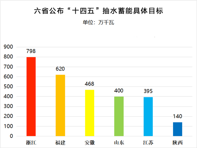 山西、廣東、浙江、安徽、河南、山東、甘肅、黑龍江、湖南、江蘇、江西、寧夏、陜西、貴州、新疆、吉林、青海、福建、廣西、湖北、四川、重慶、內(nèi)蒙古、河北24個(gè)省市區(qū)都要求積極發(fā)展抽水蓄能,其中浙江、福建、安徽、山東、江蘇、陜西6省明確“十四五”期間抽水蓄能裝機(jī)規(guī)劃目標(biāo),到2025年6省抽水蓄能裝機(jī)總量將達(dá)到28.21GW。(注:原文有刪改)