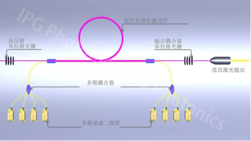 據(jù)IPG官方披露,能夠?qū)崿F(xiàn)如此高的電光轉(zhuǎn)化效率,來源于其創(chuàng)新技術(shù)——包層側(cè)泵浦技術(shù)和分布式單發(fā)射芯結(jié)二極管泵浦結(jié)構(gòu)。