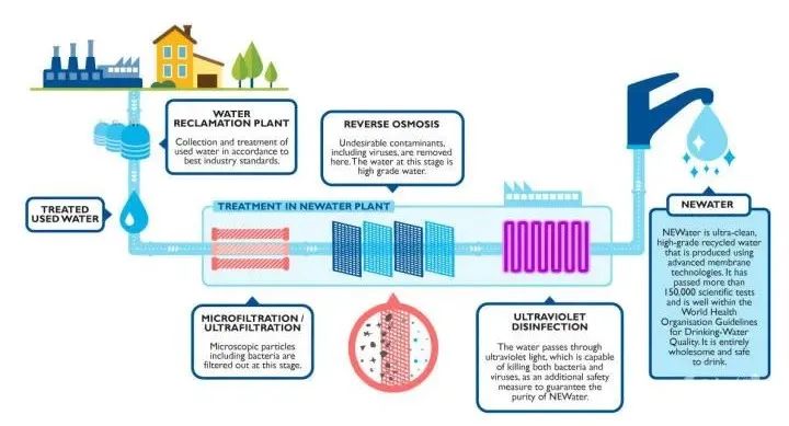 20021月,新加坡第一座新生水廠投產。到2014年,新加坡已經有4座新生水廠了,新生水可基本滿足全島30%的用水總需求。