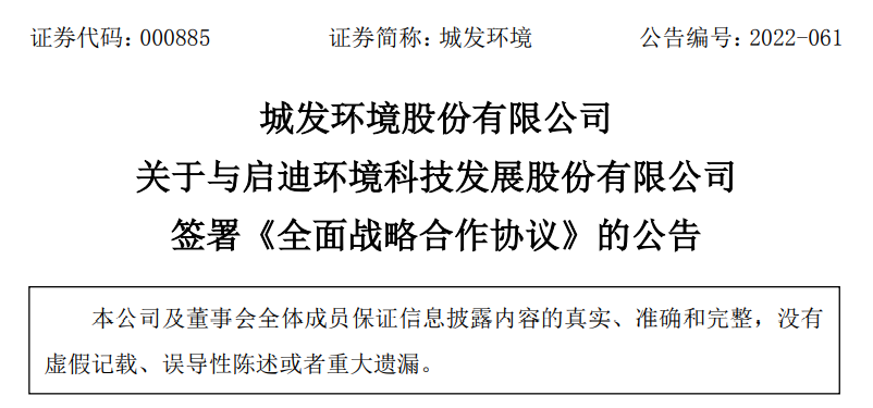 據(jù)公告顯示,終止本次重大資產(chǎn)重組的原因是城發(fā)環(huán)境自籌劃本次重大資產(chǎn)重組事項(xiàng)以來(lái),嚴(yán)格按照相關(guān)法律法規(guī)的要求,與交易對(duì)方及其他相關(guān)雙方持續(xù)進(jìn)行磋商與研討,并根據(jù)磋商結(jié)果積極推進(jìn)相關(guān)盡職調(diào)查、審計(jì)、信息披露、內(nèi)部決策等工作。鑒于本次重大重組方案論證歷時(shí)較長(zhǎng),相關(guān)市場(chǎng)環(huán)境較本次交易籌劃之初發(fā)生較大變化。經(jīng)審慎研究分析,為切實(shí)維護(hù)城發(fā)環(huán)境及全體股東利益,經(jīng)與啟迪環(huán)境協(xié)商,雙方?jīng)Q定終止本次重大資產(chǎn)重組事項(xiàng)。根據(jù)法律法規(guī)及公司章程規(guī)定,經(jīng)雙方充分溝通及友好協(xié)商,城發(fā)環(huán)境董事會(huì)經(jīng)審慎研究后,依法履行了相關(guān)審議程序,終止本次重大資產(chǎn)重組。同時(shí),另一則公告顯示,城發(fā)環(huán)境與啟迪環(huán)境簽署的戰(zhàn)略框架性協(xié)議。合作內(nèi)容、合作機(jī)制與合作期限等事項(xiàng)的具體實(shí)施尚存在不確定性,具體的項(xiàng)目合作協(xié)議或項(xiàng)目開(kāi)展方案尚需雙方進(jìn)一步協(xié)商確定。公告顯示,基于城發(fā)環(huán)境在環(huán)保項(xiàng)目建設(shè)、區(qū)域市場(chǎng)拓展、環(huán)保技術(shù)研發(fā)及人員交流等方面與啟迪環(huán)境已經(jīng)開(kāi)展了深入、全面的合作,具備良好的合作基礎(chǔ),為延續(xù)雙方友好合作關(guān)系、充分發(fā)揮雙方在環(huán)保、能源領(lǐng)域的發(fā)展優(yōu)勢(shì),公司與啟迪環(huán)境共同簽署了《全面戰(zhàn)略合作協(xié)議》,以進(jìn)一步推動(dòng)雙方交流合作。