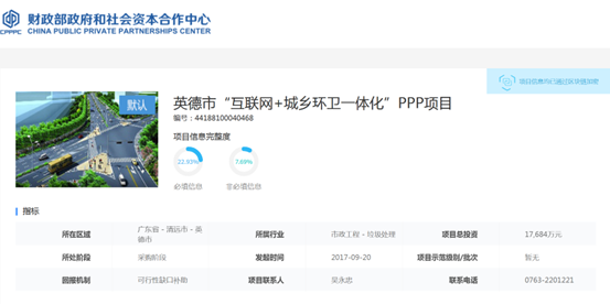 廣東省政府采購網消息,近日,英德市城市管理和綜合執(zhí)法局發(fā)布2022年08月至2022年10月政府采購意向,英德市“互聯(lián)網+城鄉(xiāng)環(huán)衛(wèi)一體化”PPP項目計劃于2022年10月份開展政府采購。