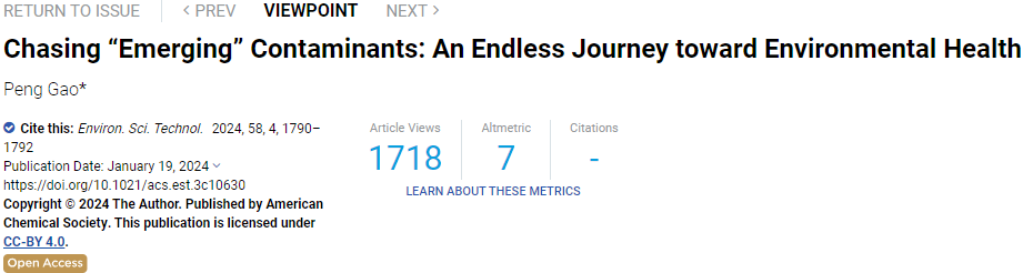 2024年01月19日美國匹茲堡大學(xué)助理教授高鵬博士以“Chasing “Emerging” Contaminants: An Endless Journey toward Environmental Health”為題在EST上發(fā)表了一篇Viewpoint,強(qiáng)調(diào)了關(guān)注新興污染物的同時(shí)也需要警惕遺留污染物,并提出了解決這些環(huán)境問題的多種方法和途徑。以下是這篇文章的分享。