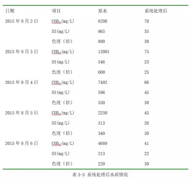 2015年8月,我司在東莞某造紙廠進行造紙廢水及污泥處理技術(shù)的中試,先將廢水集中進入調(diào)節(jié)池,調(diào)節(jié)廢水的濃度,pH值和廢水污染物濃度,然后廢水進入混凝槽,投加造紙廢水凈水劑,充分混合反應(yīng)后進入一級和二級斜管沉淀池,各項指標(biāo)均能達到客戶的要求。系統(tǒng)產(chǎn)生的造紙污泥,經(jīng)干化脫水處理后,回用處理,系統(tǒng)不產(chǎn)生二次污染。