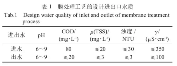 通過(guò)膜處理工藝降低回用水的COD、電導(dǎo)率、TSS含量等關(guān)鍵指標(biāo),實(shí)現(xiàn)回用白水對(duì)部分清水的替代。膜處理進(jìn)出水部分指標(biāo)見(jiàn)表1所示。